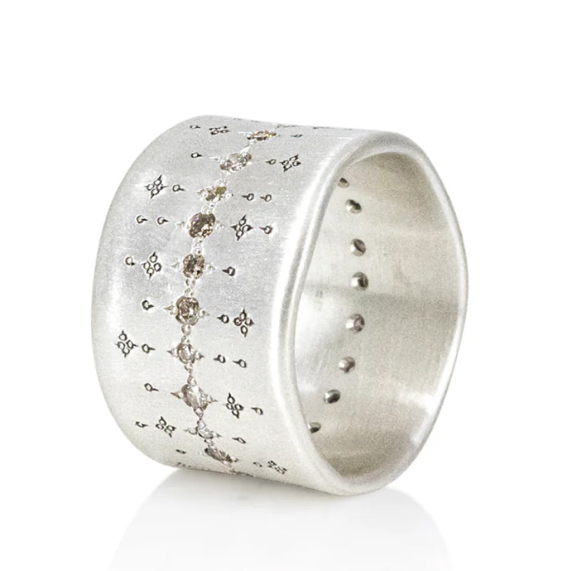 Born along the Mediterranean coast, Adel Chefridi came to New York in 1998 where he founded his studio. His work is drawing from his multicultural background, resulting in an attempt to reconcile past and present, nostalgia and hope. HIs designs emphasize simplicity, wearability, durability, and openness to light and movement. Using natural gemstones, his pieces have a friendly and peaceful feel that makes them wearable every day.