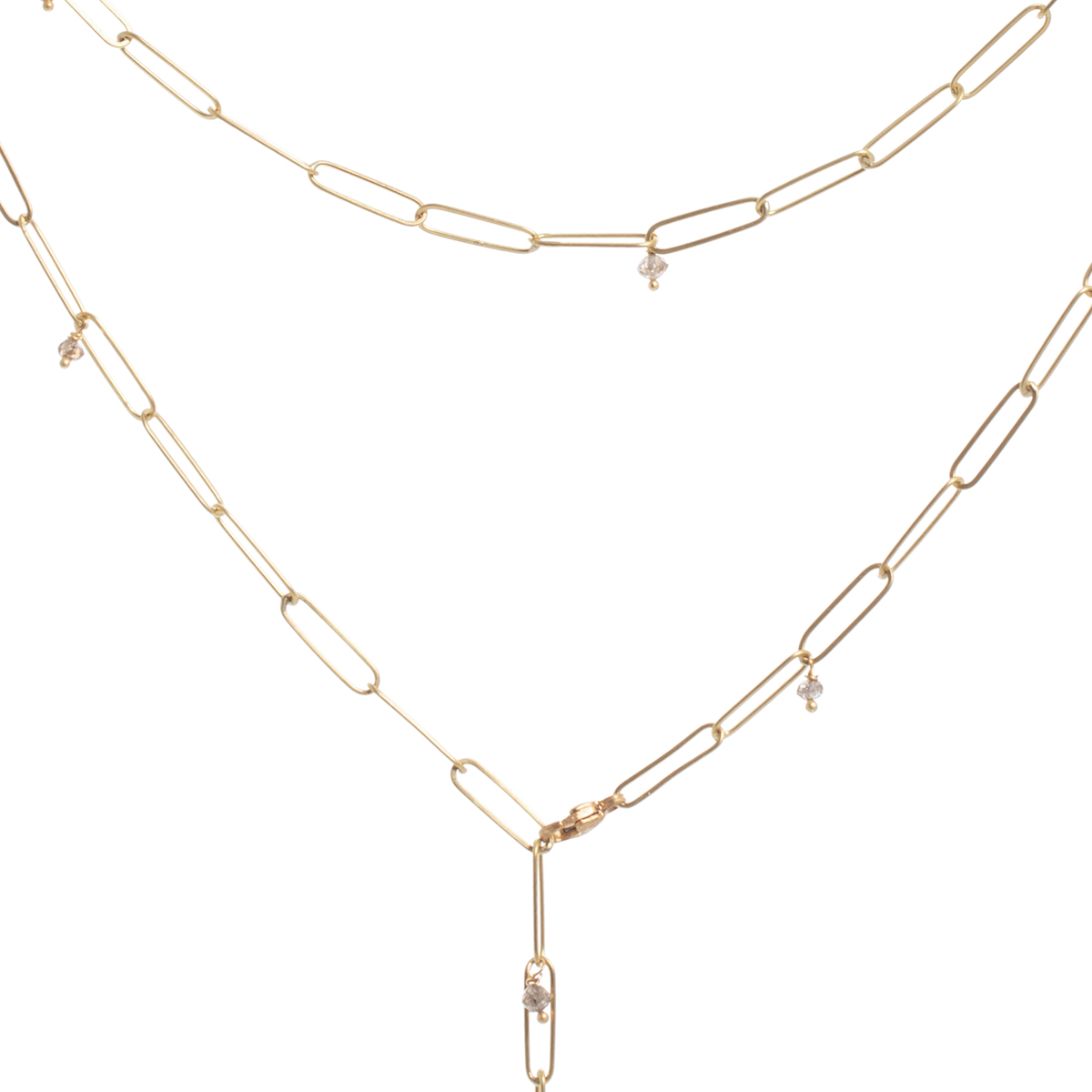 Lene Vibe does not sketch any of the pieces first; it seems to all take place in her imagination and comes out in the way in which she approaches the metal. Her pieces have a three-dimensional quality and are brought to life in 18K gold, a range of pearls, colored gemstones and polish rough cut and raw diamonds.